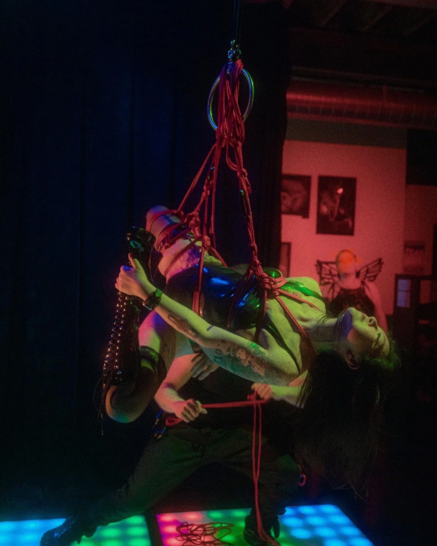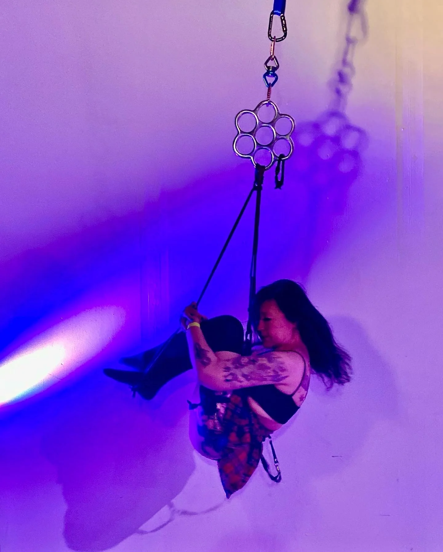 As an older, queer, femme-presenting POC who didn’t initially feel welcome in the shibari community, she is dedicated to rope education accessibility. Her rope style is best described as connective western rope with a mix, largely self-taught, of American, circus, and eastern rope (shibari and kinbaku) styles. She is heavily influenced by her self-suspension practice. Bliss has been touching rope nearly every day for over 4 years and during that time has done hundreds of rope suspensions. While she changes her Topping style dynamically based on what’s been negotiated, her default style is a uniquely connective style with strong elements of Dominance.